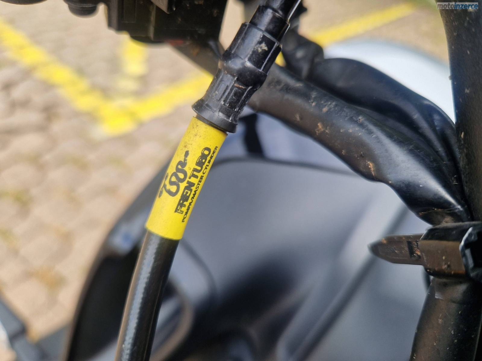 Klaxon má, jen je přemístěn z důvodu přípravy pro montáž hyperpro tlumiče řízení.