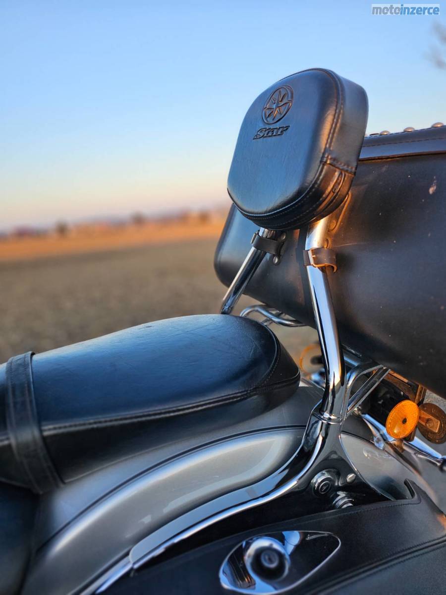 Perfektní stav, doplňky téměř vše originál Yamaha, mřížka na předním blatníku, přední padák, zadní padáky, kožené kufry, zadní kožená truhla, kůže na nádrži, nejvyšší cestovní plexi, zadní opěrka s nosičem, sklopná opěrka řidiče, předkopy, plno věcí dochromováno, krytka motoru, krytky pod sedadlem, zámky u kufrů atd.