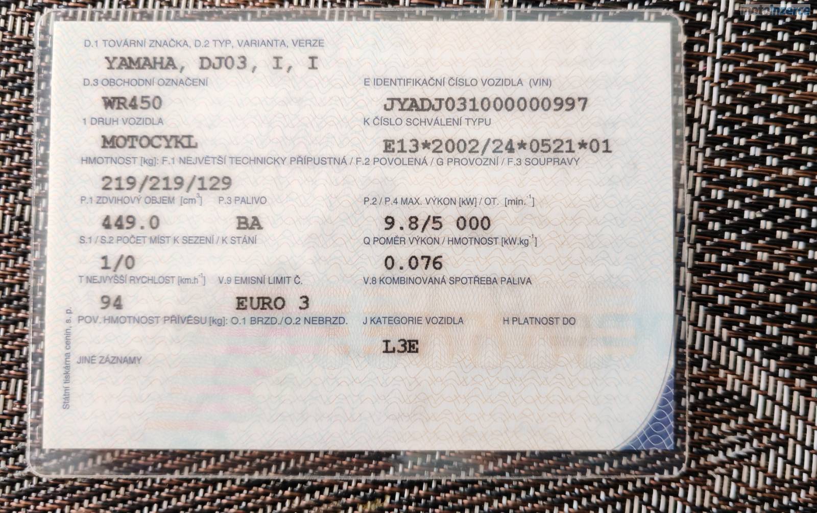 Prodám Wr 450, pravidelny servis, vše původní,