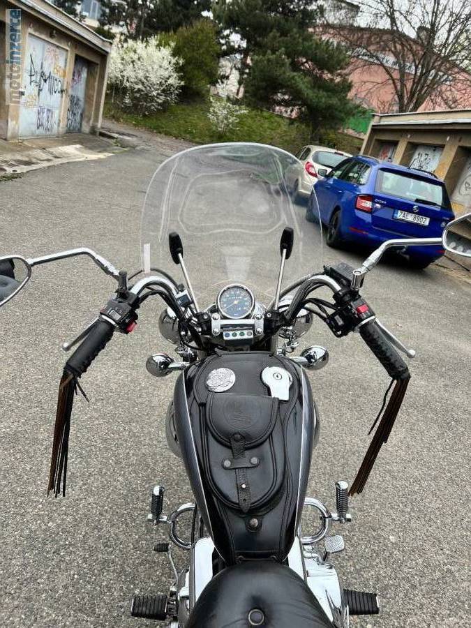 K moto jsou kožené brašny, sada nových svíček, cestovní plexi, předkopy, nové přední stupačky, přídavná rampa se světli, třásně, kapsa na nádrž.