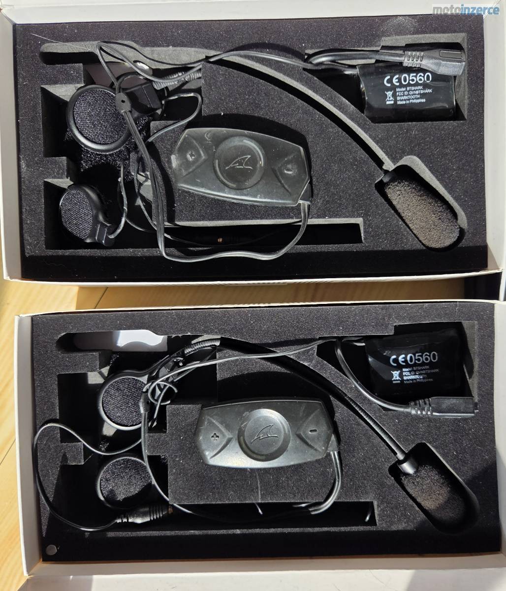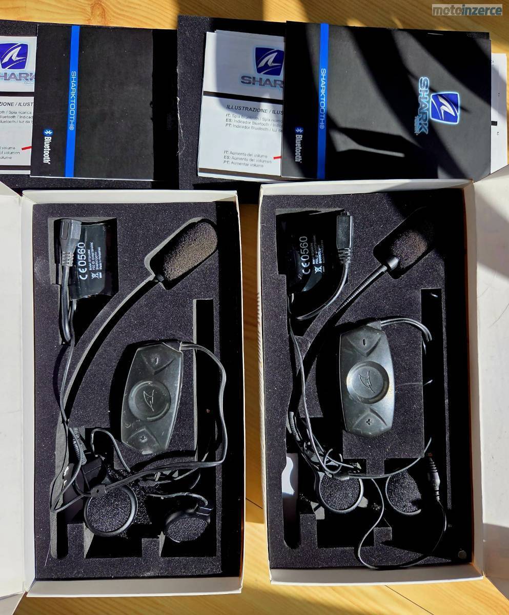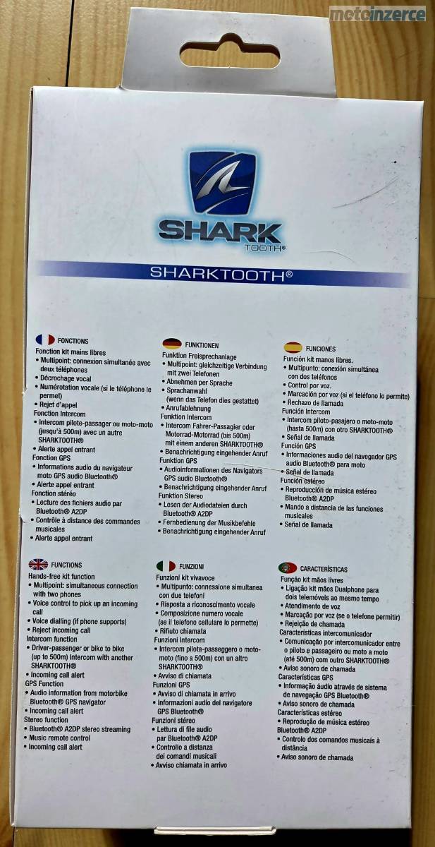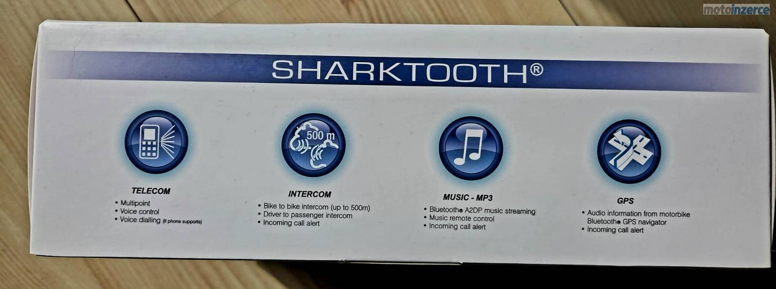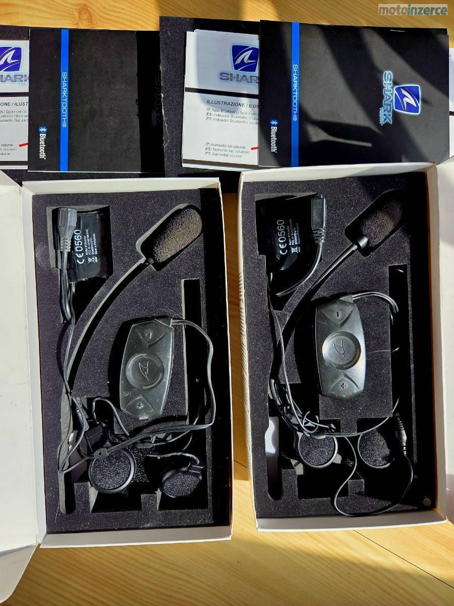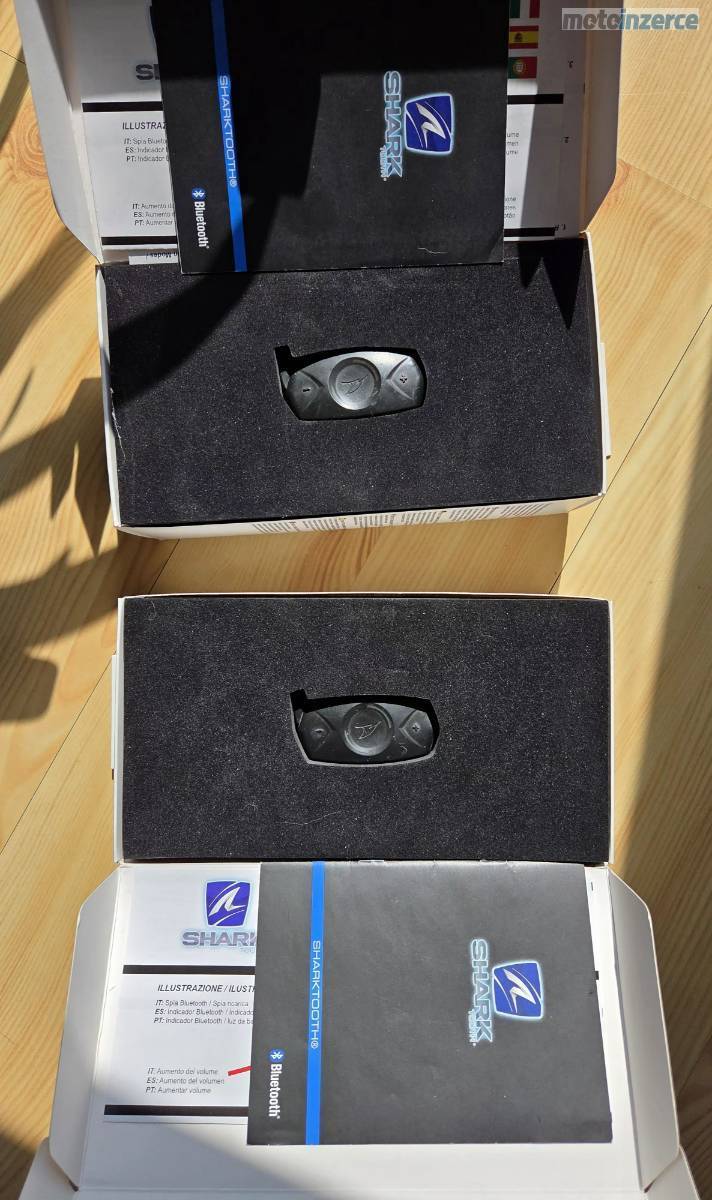 Prodám 2 kusy Interkom, za oba 1500, Kč celkem, použité komunikační zařízení SHARKTOOTH s bluetooth firmy Shark, použitelné na jednoduché zabudování do všech typů helem. Celé komunikační zařízení včetně baterie je instalováno uvnitř přilby a na skeletu přilby je přilepený pouze tenký ovladač. Bezproblémové spárování a spojení s dalšími druhy interkomů značek INTERPHONE, CARDO. Poslech hudby, telefonu, navigace. Výdrž baterie cca 6 8h dle podmínek, dosah cca 500m. Není kompatibilní s interkomem SENA! +cena: Zásilkovna, Česká pošta. Tel: 603 212 995