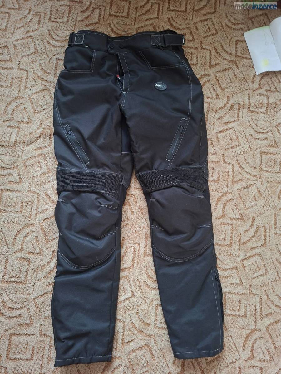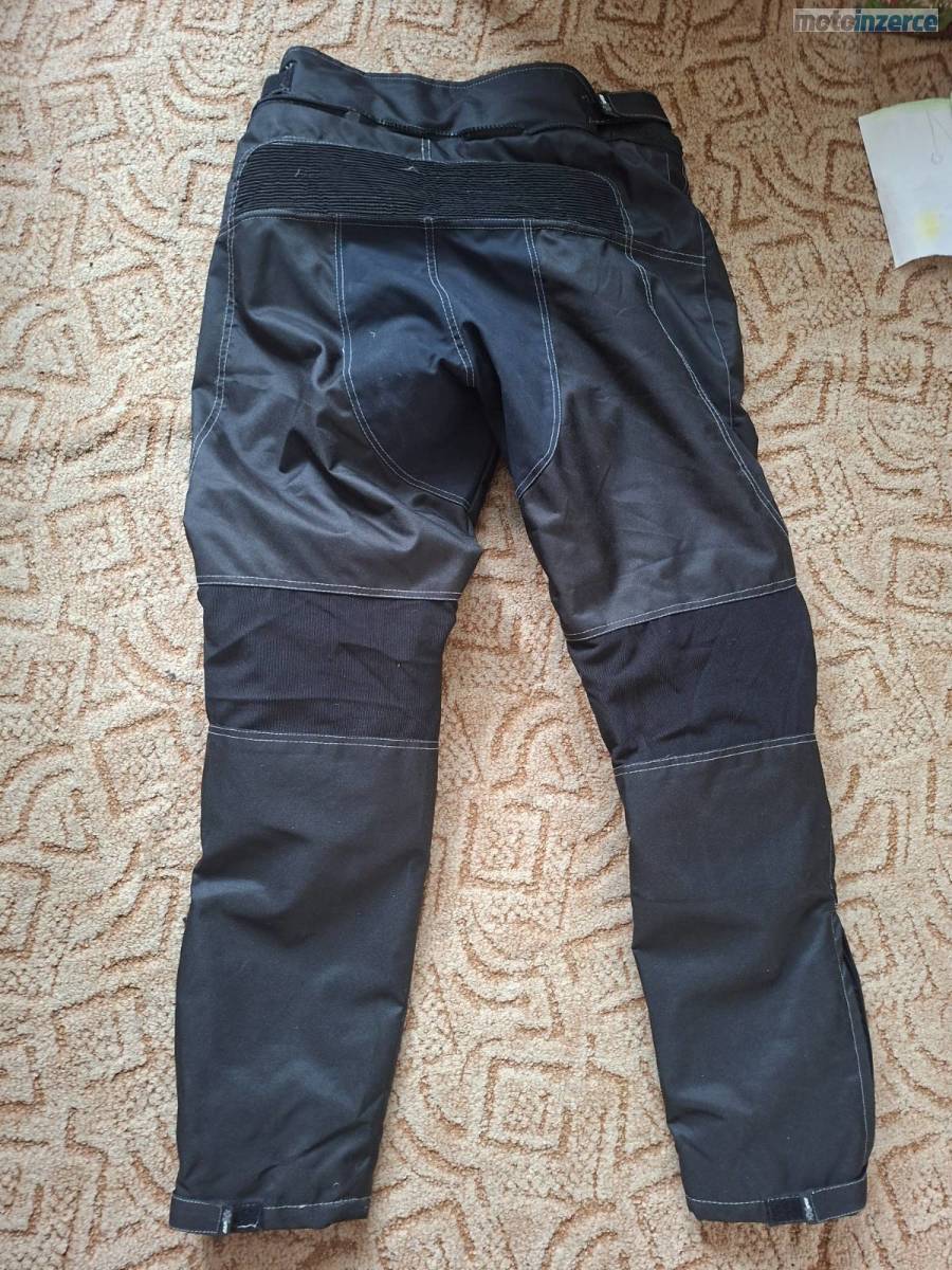 Prodám textilní kalhoty, vyndavací teplá vložka, možnost stažení v pase, zip na sepnutí s bundou, větrací otvory, max 5x použité jako nové.