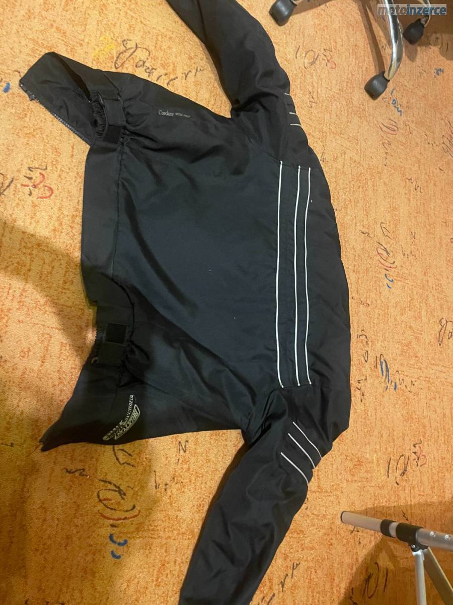 Prodám komplet nepromokavou pánskou textilní bundu s kalhotami, možnost spojit zipem do kombinézy. Chrániče loktů, kolen.