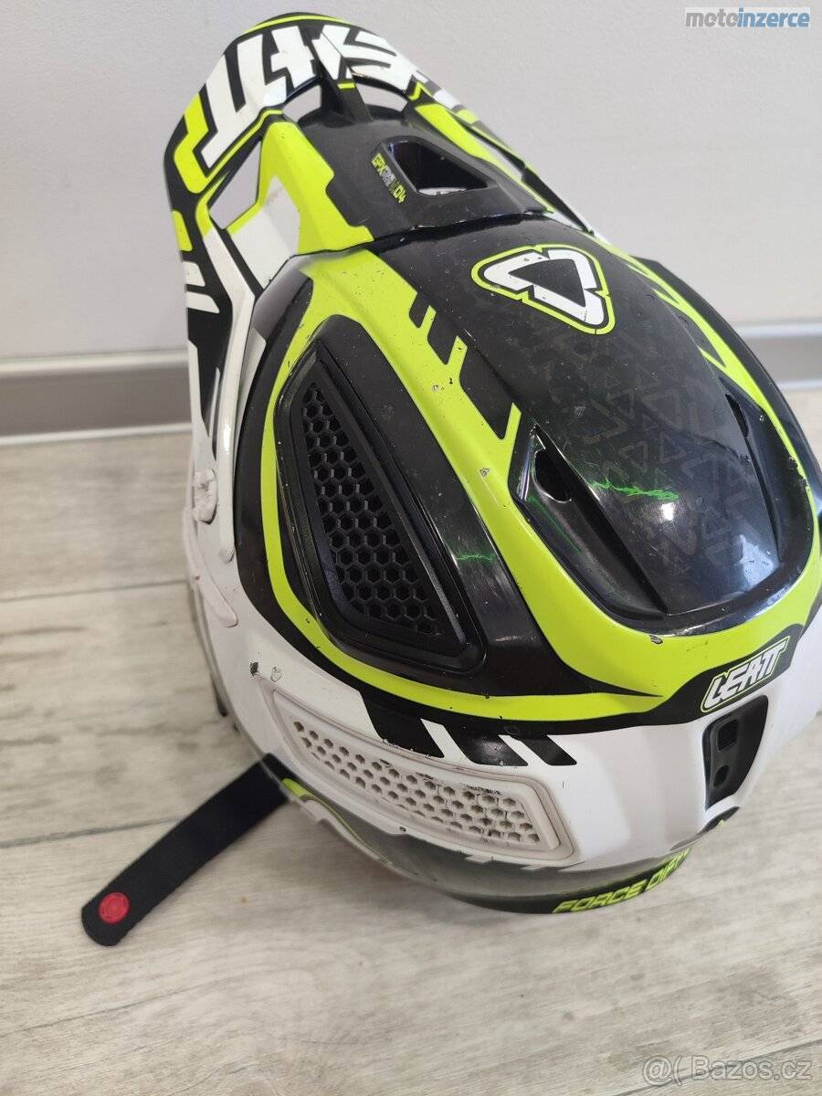 Prodám přilbu Leatt vel. 55 56 + výměnný vnitřek na velikost 53/54, na helmě jsou oťuky od kamínků, cena 1000 kč, Kalhoty JT velikost 28 vnitřní levá kůže přodřena viz foto, cena 500 kč, při platbě předem na účet je celková cena včetně pošty.