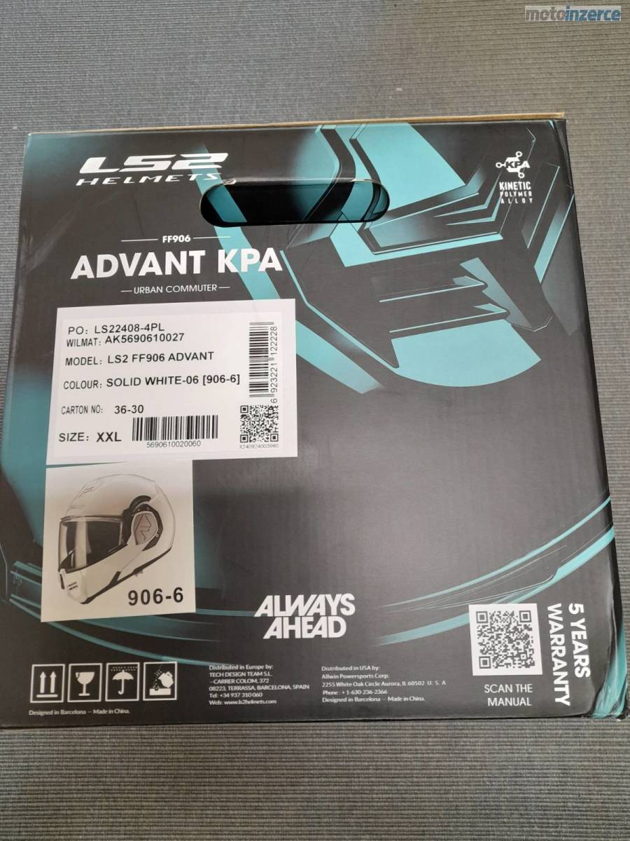 Prodám novou,,klapačku" LS2 FF906 Advant, bílá barva, zakoupená v prosinci 2025 jako nová. Velikost XXL pro obvod hlavy cca 58 60 cm. K vyzkoušení centrum Prahy. Petr.