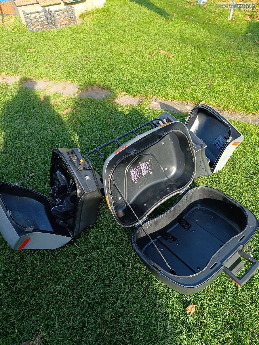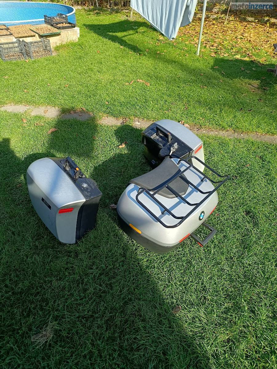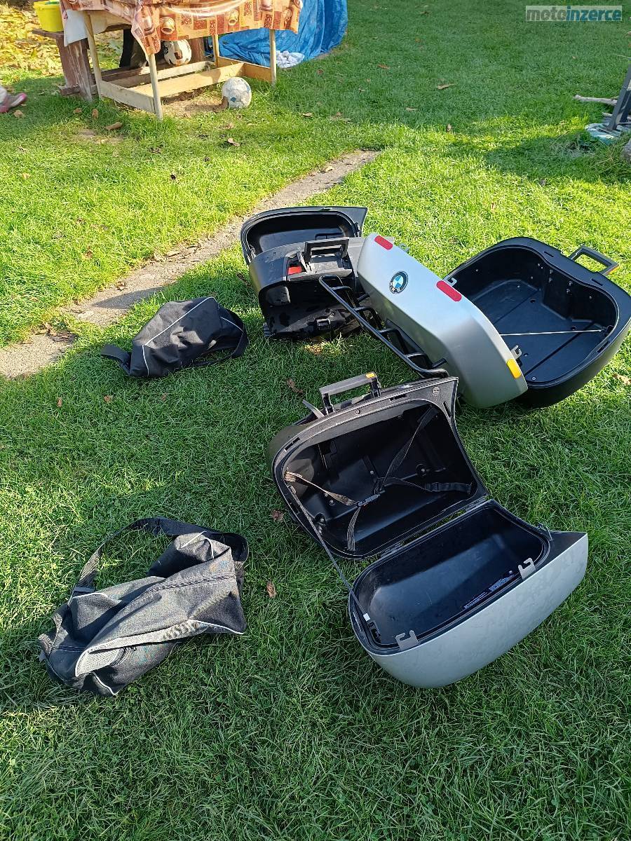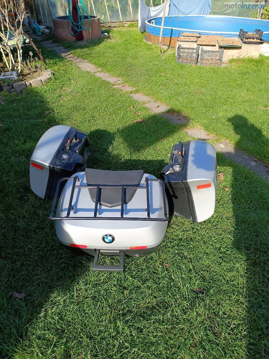 Sada kufrů s vložnými taškami na popruh. Horní pojme dvě přilby a má dodaný horní nosič. BMW R 1150/1200.